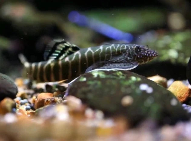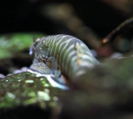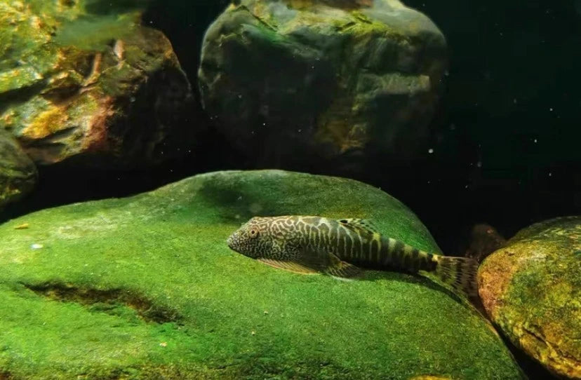 The Green Zebra Hillstream Loach is a beautifully patterned freshwater fish known for its striking zebra-like markings and peaceful temperament. Native to fast-moving rivers in Southeast Asia, this loach is uniquely adapted to cling to rocks in high-flow environments using its broad, sucker-like fins.