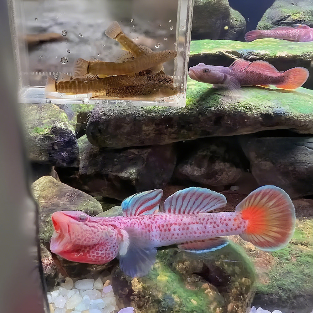 The Zhou’s Scarlet Goby, a prized member of the Rhinogobius genus, is a striking Freshwater Goby native to swift mountain streams in Guangdong’s Lianhua Mountain and nearby regions. Reaching around 4 cm in length, males are especially eye-catching, sporting red-orange blotches and distinct white-edged fins. These little powerhouses are lively and engaging, making them a stunning centerpiece for any Biotope & Native Fish setup.